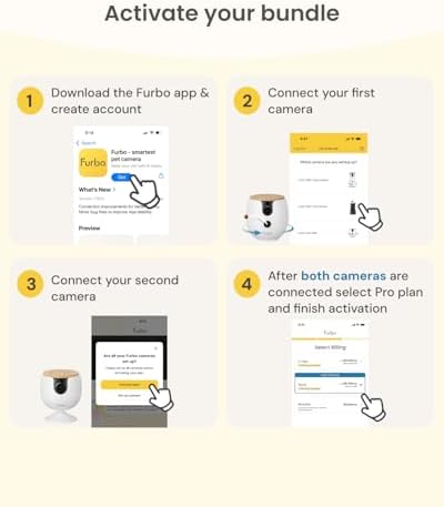 EASY SETUP, SECURE CONNECTION: 1) Plug in Furbo using the included USB cable (note: USB power adapter not included). 2) Place both Furbo cameras within 5 ft of your WiFi router for easiest set up. 3) Download the Furbo app 4) Create an account and connect both cameras to 2.4GHz WiFi (5GHz not supported). 5) Select your Furbo Nanny Pro subscription plan. 6) Enable 2-Step Verification to keep your account secure. Furbo Cameras uses bank-level encryptions to ensure your data remains private.